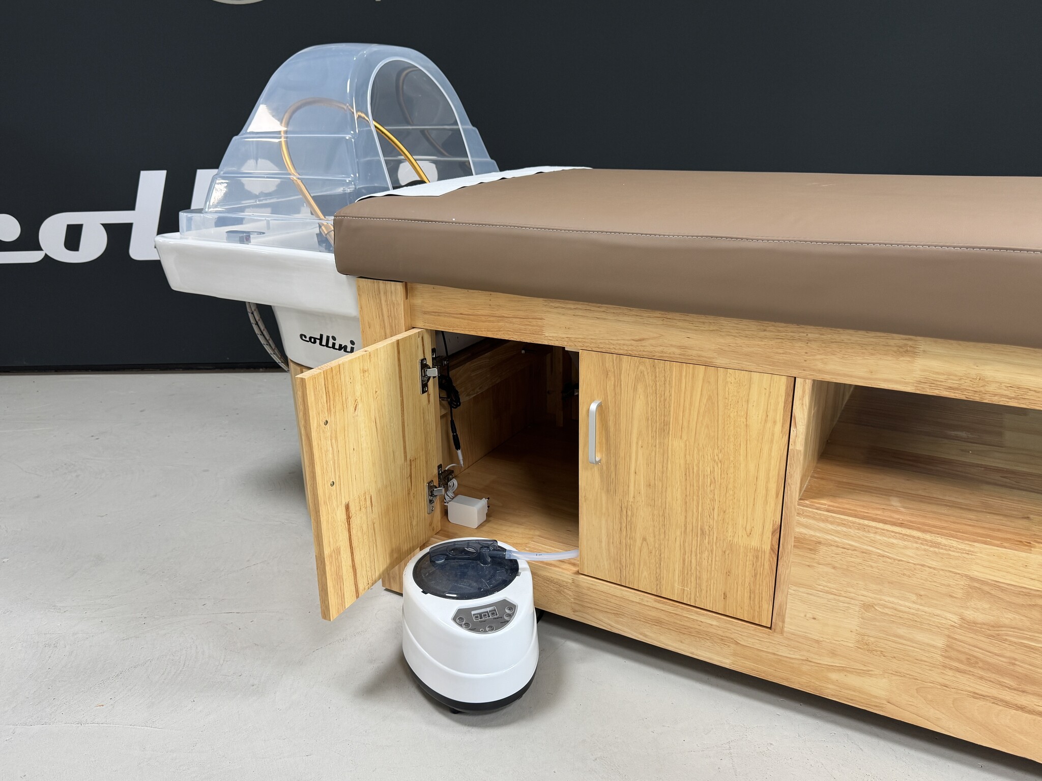Collini ZenMist – Japanisches HeadSpa & Massageliege aus Eichenholz mit Dampf & Regendusche